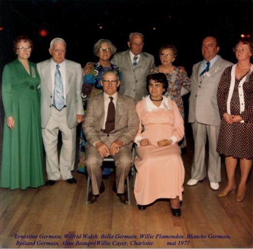 Ernestine Germain, Wilfrid Walsh, Bella Germain, Wellie Plamondon, Blanche Germain, Roland Germain, Aline Beaupré, Wellie Cayer et Charlotte Richard